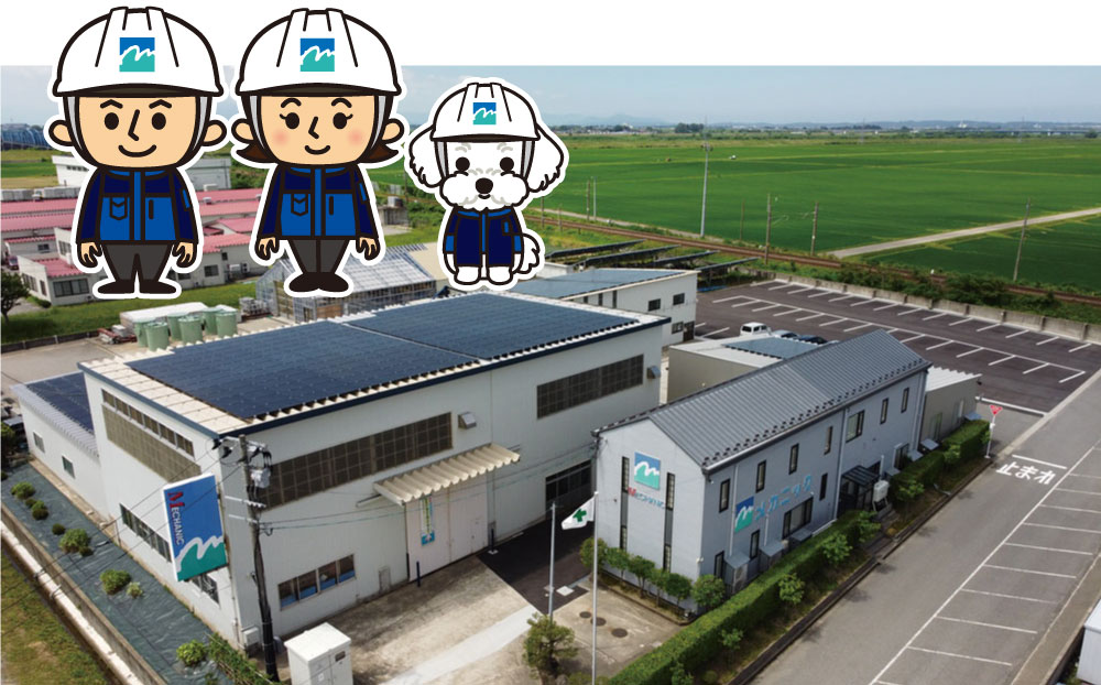 地域の上水・下水・ごみ処理施設などの環境インフラ設備や農業水利に関わる設備、そして再生可能エネルギーのプラント。 メカニックではこれらの設計から機器の製作、工事、メンテナンスを一貫しておこなっております。 人と地球、どちらも笑顔になるような「持続可能な社会」を実現することが私たち、メカニックの使命です。 皆様が安心して暮らせる地域づくりに貢献してまいります。